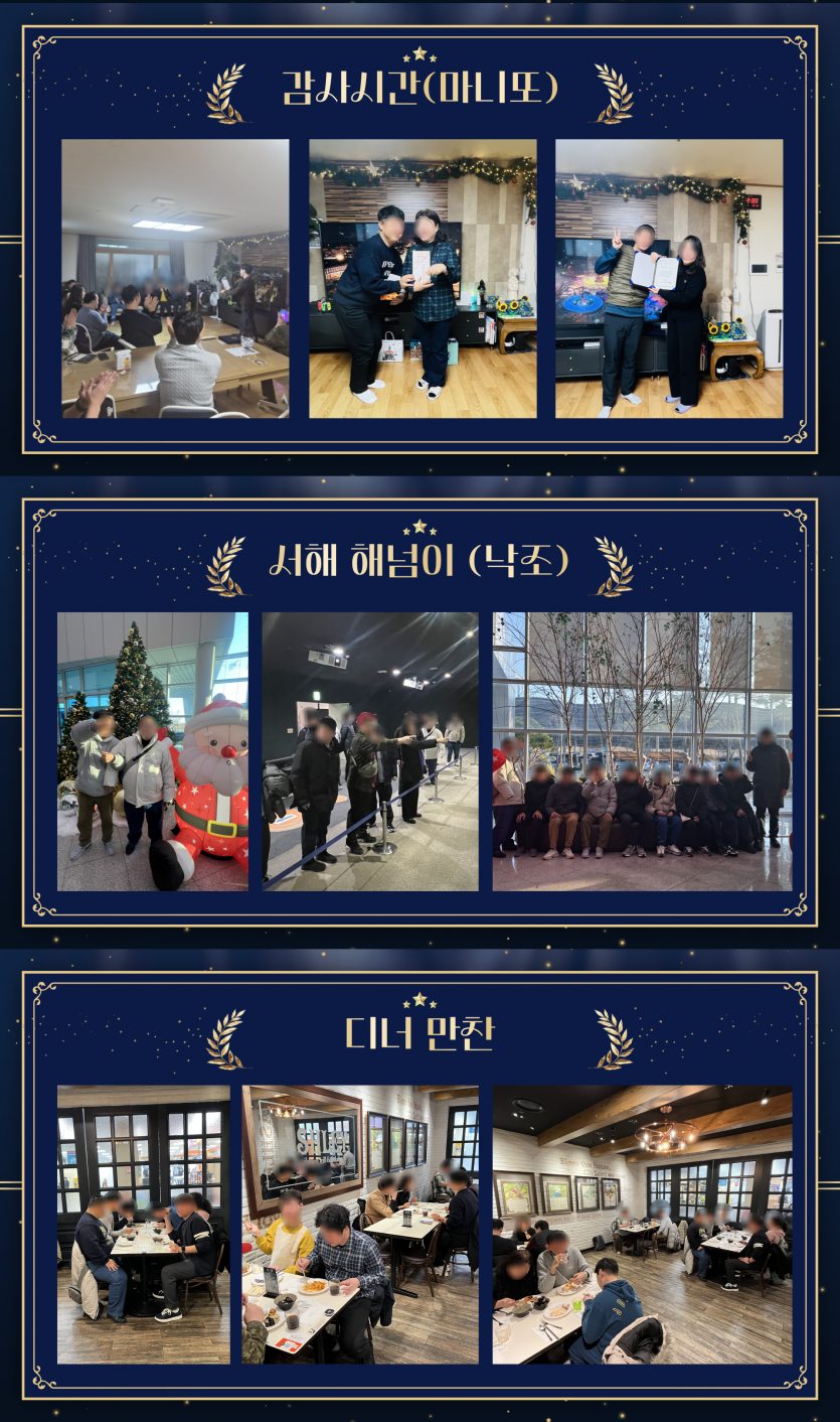 2025년 12월 18일 늘푸른집 이용인 분과 종사자들 다함께 송년의 밤 행사를 진행하였습니다.
