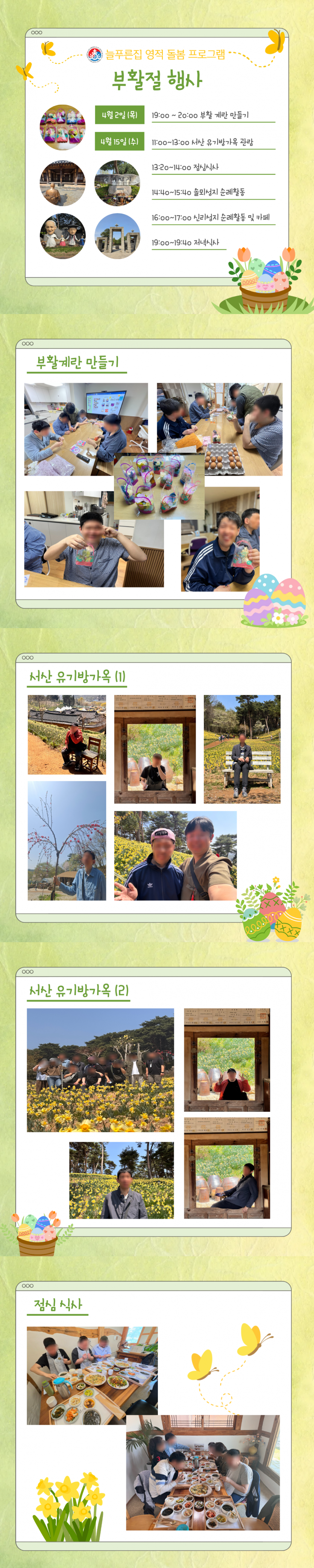 이용인분들은 이번 프로그램을 통해 부활절의 의미를 되새기고, 함께하는 기쁨과 정서적 안정을 느끼는 뜻깊은 시간을 가지고